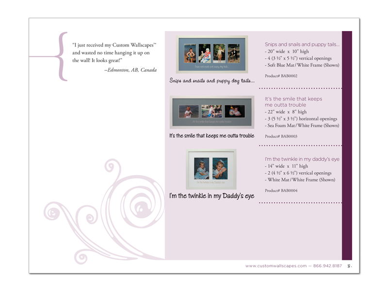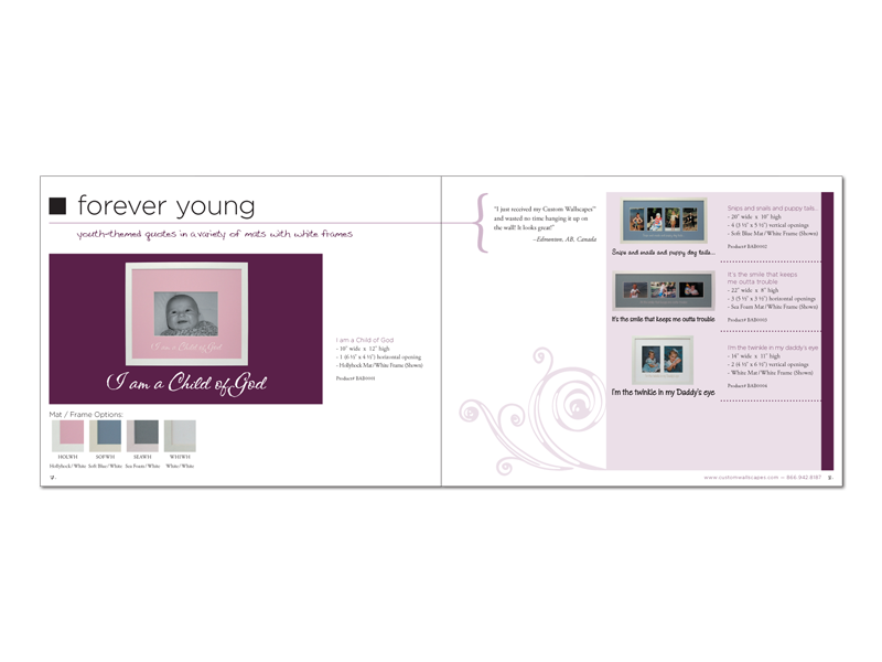 Wall Enhancers sell vinyl lettering through retailers. I developed color-coded product sections making it easy for retailers to reference. I also built an accompanying pricing book with over 900 UPC codes.