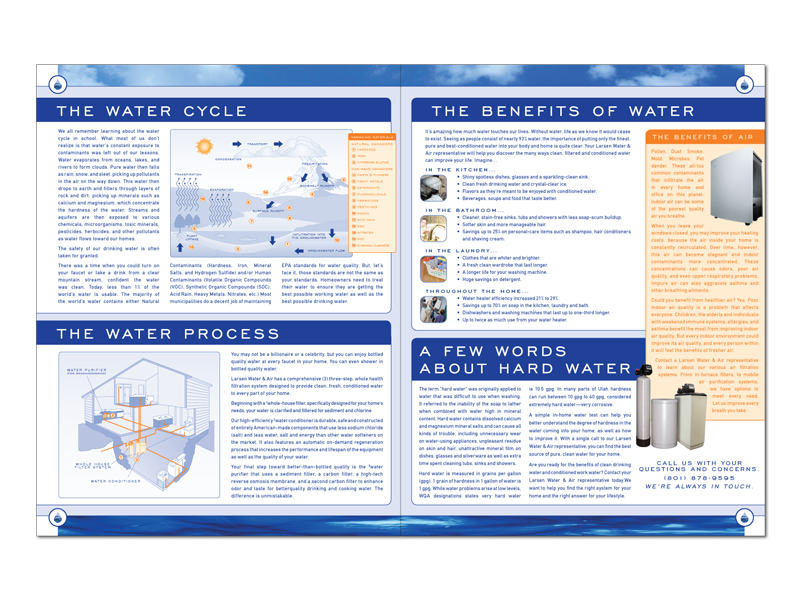 This brochure focuses on the services Larson's offered. Based off an identity created by another designer, I fleshed out the branding further adding supporting elements and custom illustrations to communicate the complex systems offered.