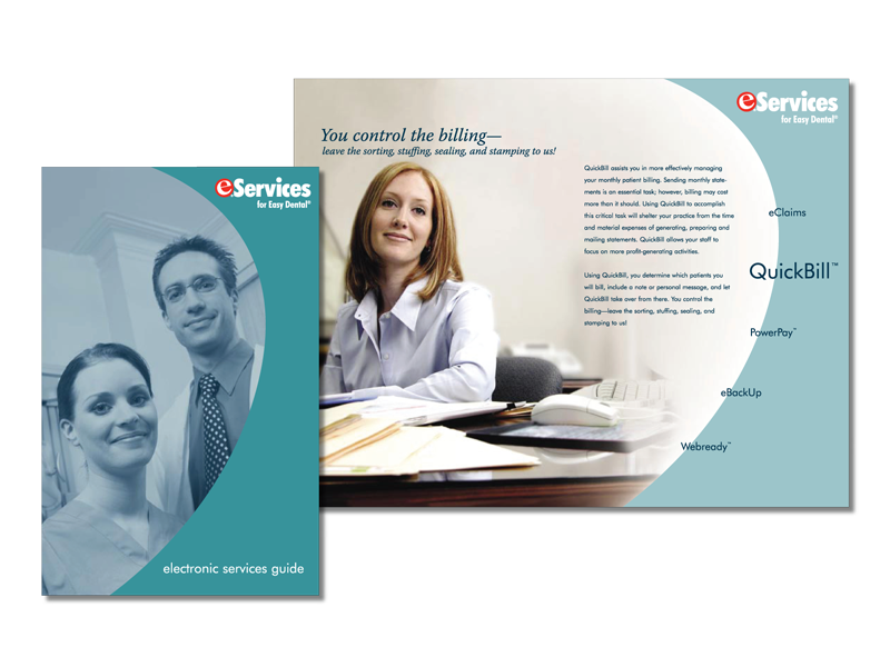 This brochure showcased the electronic services offered by Dentrix. I created a hierarchy for each of these services typographically and used consistent graphics for each service to create brand recognition.
